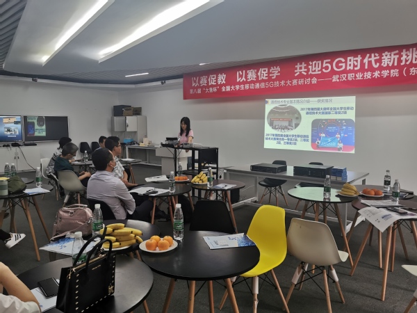考场的另一边在热烈讨论交流,研讨会上,电子信息工程公司经理陈晴致辞,她表示,随着“大唐杯”越来越成熟,知名度越来越高,全国参赛的公司和员工也越来越多,但湖北的高校之间交流并不是很多,希望借此比赛促进湖北高校之间的相互交流学习,使湖北高校的生态环境越来越好。