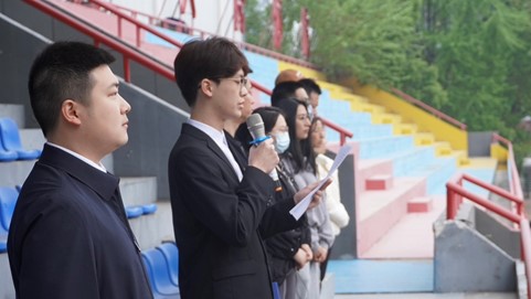 员工代表通信22302单宝韵,发表国旗下讲话,他从学风建设角度与大家共话学习态度的重要性,结合历史上优秀学风典范,号召同学们以严谨的态度、务实的作风,营造积极向上的学习氛围,昂扬的斗志、饱满的热情,投入到学风建设的新征程中“用我所学、尽我所能,以青春之我,建设青春之中国、青春之人类、青春之世界”。