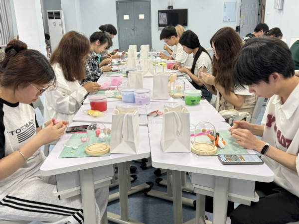 第二部分是手工制作活动。在这个活动中,20名少数民族员工在教室内学习色彩心理学知识,了解了不同颜色所代表的色彩能量。在专业老师的指导下,同学们挑选了自己喜欢的香薰石和黏土,开始了创作之旅。他们将自己的情感和想法融入作品中,创作出了独具特色的艺术品。这一环节不仅让同学们在创作中释放了压力,还培养了他们的创造力和审美能力。